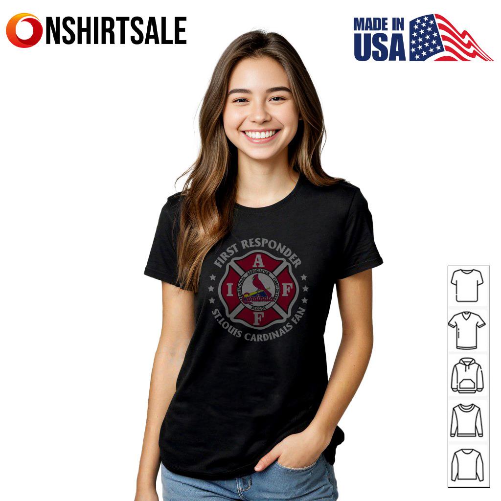 First Responder St. Louis Cardinals Fan T-Shirt – Firefighter Baseball Support Tee.Celebrate your passion for the St. Louis Cardinals and honor our brave firefighters with this First Responder Fan T-Shirt. Designed for those who serve and cheer, this shirt features a bold tribute to firefighting heroes blended with team spirit. Whether you’re at the ballpark, station, or just enjoying your day off, this shirt makes a statement of strength, loyalty, and support. The soft, breathable fabric ensures all-day comfort, while the unisex fit makes it great for men and women alike. A perfect gift for firefighter families, baseball lovers, and St. Louis fans who want to stand proud. Wear it with pride — on game day and every day.First Responder St. Louis Cardinals Fan T-Shirt – Firefighter Baseball Support Tee