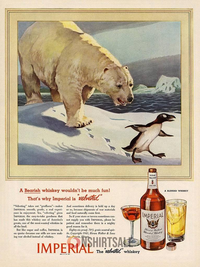 Vintage Imperial Whiskey Advertisement Poster – 1943 Polar Bear and Penguin Art Print