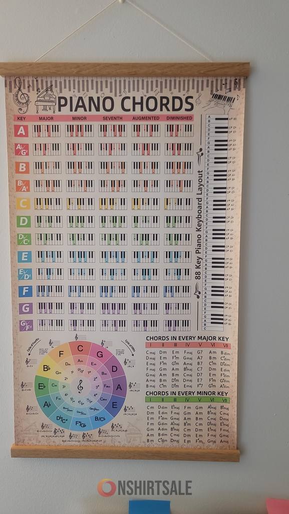 The “Piano Chords Poster” is a comprehensive guide designed to help beginners learn piano keys, chords, and scales with ease. Featuring clear, easy-to-follow visuals, this educational poster makes learning the fundamentals of piano playing accessible and enjoyable. Whether you’re just starting out or looking to reinforce your knowledge, this poster is an invaluable tool for mastering essential piano skills. Perfect for music classrooms, home studios, or practice rooms, it provides a quick reference to help you navigate the keys, chords, and scales needed for everyday playing. Its high-quality print ensures durability, making it a long-lasting addition to your musical resources. This poster also makes a thoughtful gift for aspiring pianists, students, or music lovers. Start your musical journey on the right note with this essential piano guide.