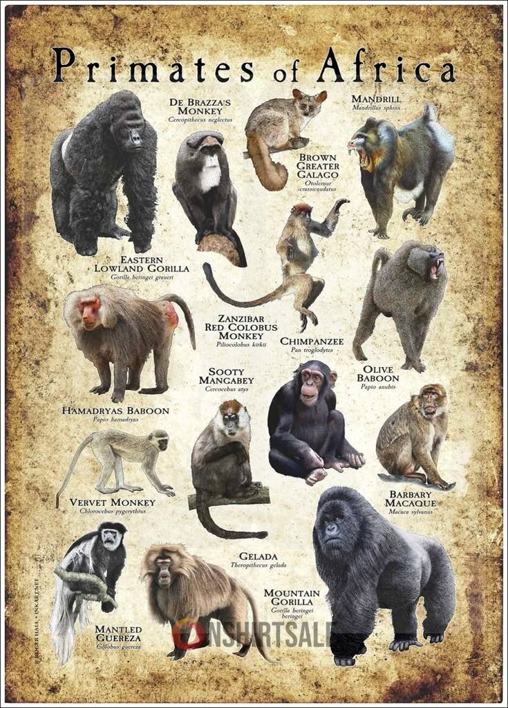 Primates of Africa Poster – Guide to African Monkey and Gorilla Species
